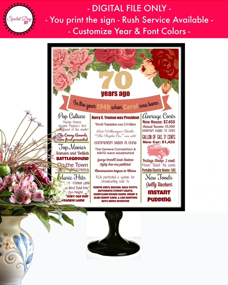 Featuring seven individual rings, one for each decade, this beautiful sterling silver necklace is the perfect gift idea for any mom, sister, or best friend. See more ideas about flower arrangements, arrangement, table flowers. Make sure they all come to the big party by sending them blue flower illustration 70th birthday invitation. Birthday gifts, send birthday gifts online same day. What better way to commemorate their impressive birthday milestone than with a very special necklace? Roses have become the perfect means for expressing our love and appreciation to someone special. I thought of putting them together in a book but knew it would end up sitting on the shelf. Supplied empty, these planters are perfect for planting up flowers to brighten. Seventy wonderful years on the planet and they still act as young as seventeen. Birthday card with cute birds with flowers and balloons,ice cream gifts,confetti. Buy the 70th birthday rose to say happy birthday to the special man or woman in your life. Looking for the ideal 70th birthday gifts? Happy birthday flowers for someone special.